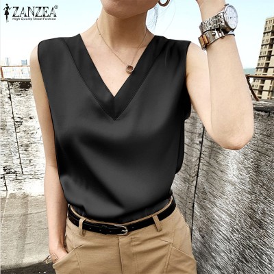 Celmia ZANZEA Women's Sleeveless Satin Silky Tops Blouse Plain OL Office Business Cami Vest #11