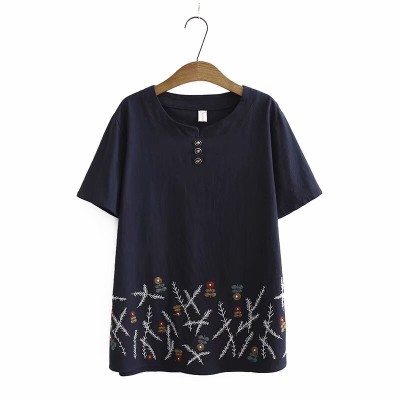 Plus Size White Red Women's Flower Embroidered Shirt Short Sleeve Summer Shirts Vintage Tops