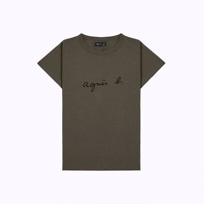 Spring and summer new agnes b cursive PALEESIJA letters pure cotton short-sleeved T-shirt dark blue women's clothing
