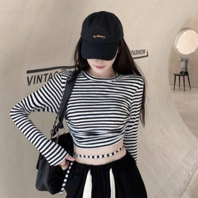 Super Popular Striped Korean Style Loose Round Neck Ins Short Sleeve T-shirt