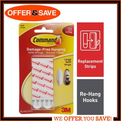 3M Command White Small Refill Strips, 17022P, 16/Pack, Holds Up to 450g, Damage Free, Holds Strongly
