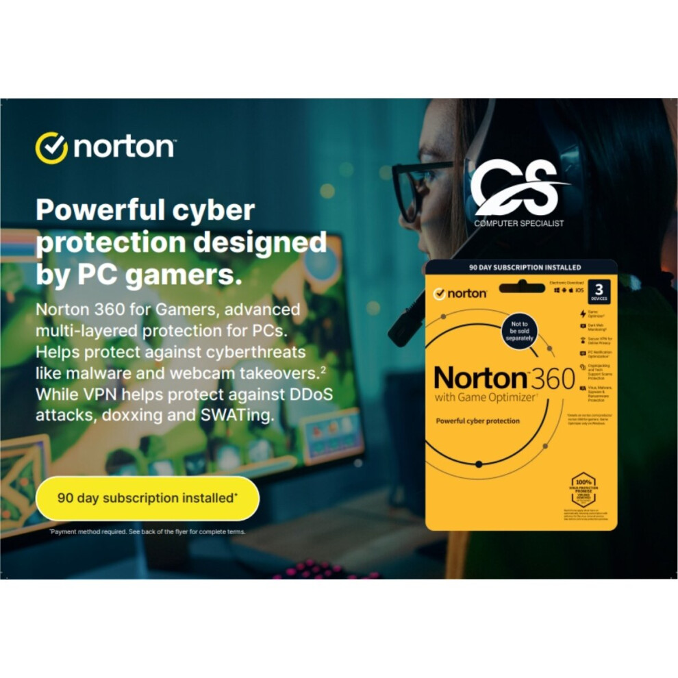 Norton Anti-Virus Powerful Cyber Protection Designed by PC Gamers - Norton 360 for Gamers, multi-layered protection for PCs. Helps protect against cyberthreats like malware and webcam takeovers. While VPN helps protect against DDoS attacks, doxxing and SWATing. Provides an immersive game experience by reducing performance interruptions while still mainting your computer's security, and why we have installed a complimentary 90 day license on your new machine.