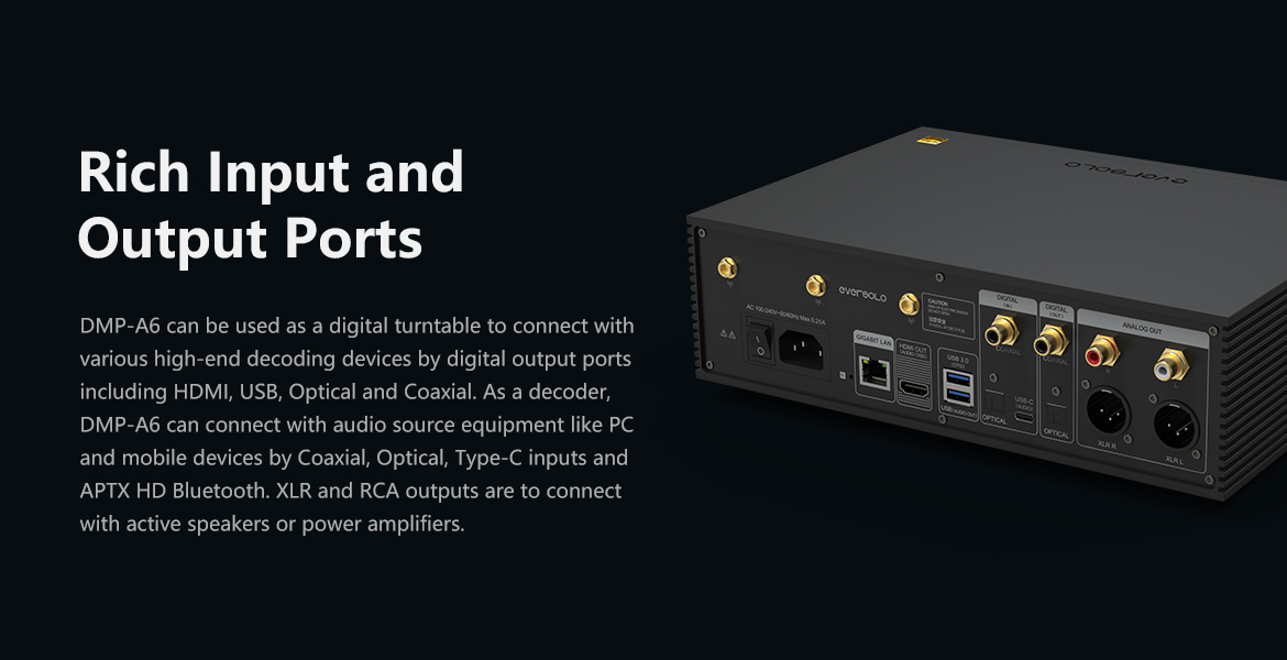 > Support USB, Optical, Coaxial, HDMI digital audio Bit-perfect output.