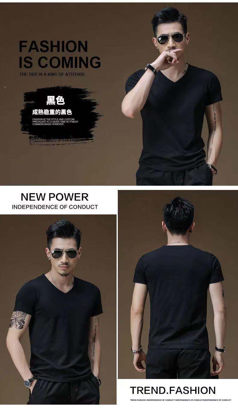3vyy phong cách mới thời trang ngắn tay rắn màu người đàn ông V-Neck nửa đồ lót lót áo thun cơ thể tay áo lụa cơ thể sửa chữa T-shirt 1/
