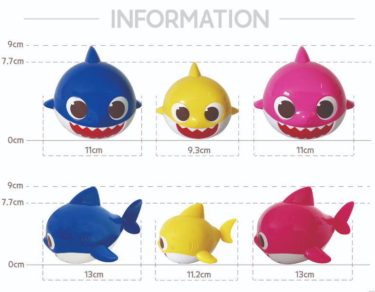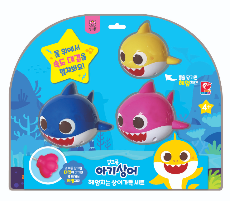 ● Pinkfong Shark Family Water Toy Set (3 PCS included)● No battery required● Wind-up toy● Pull the shell-shaped lever and let go