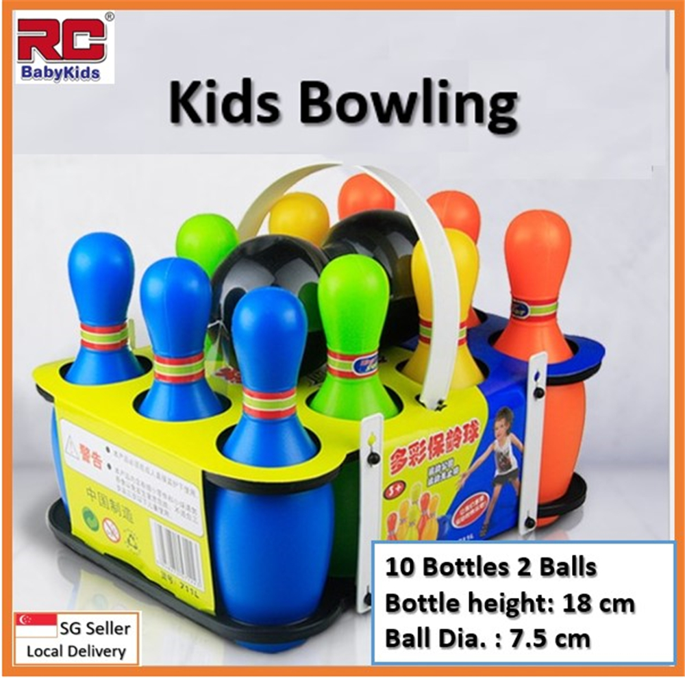 - 10 Bowling Pins + 2 Bowling BallsCute and colorful *,which is attractive to children. *Children will have hours of fun with this set indoors or outdoors. *Babies overall abilities will be improved while having fun. *Taking exercise and doing sports from childhood,build strong body.