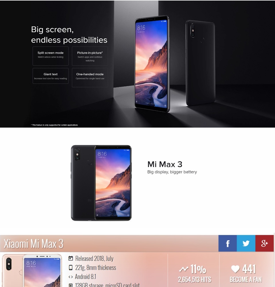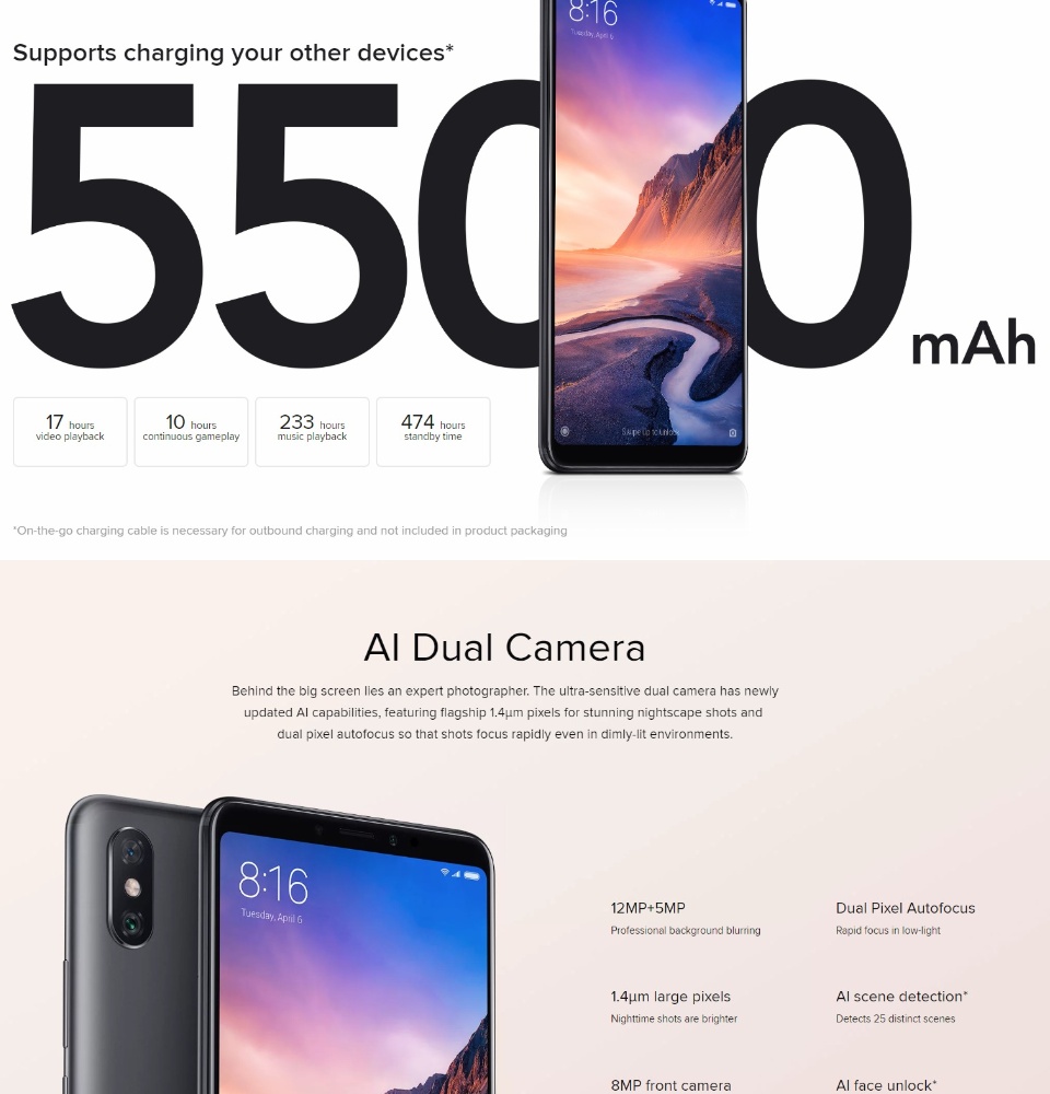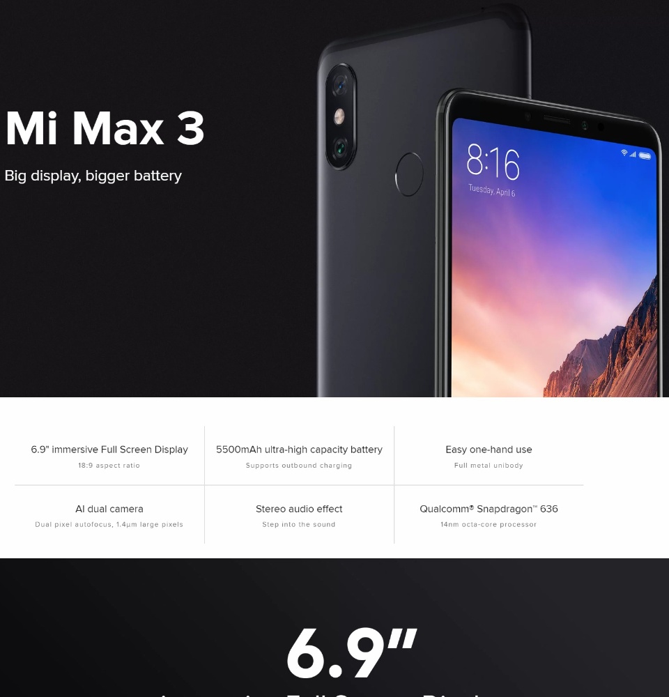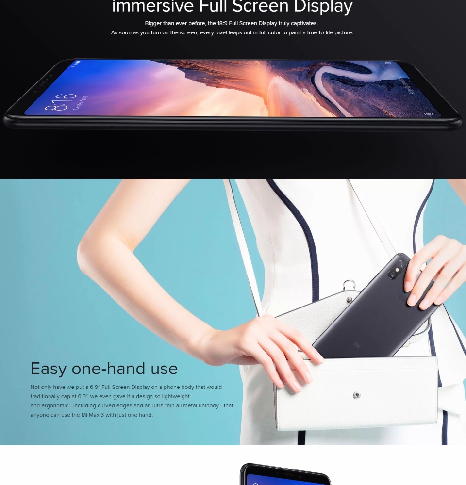 Xiaomi Mi Max 3//ROM 64GB RAM 4GB/Pin 6.9 inch/5500mAh/Mở khóa khuôn mặt AI/Bộ thoát hiểm (Bảo hành SG)