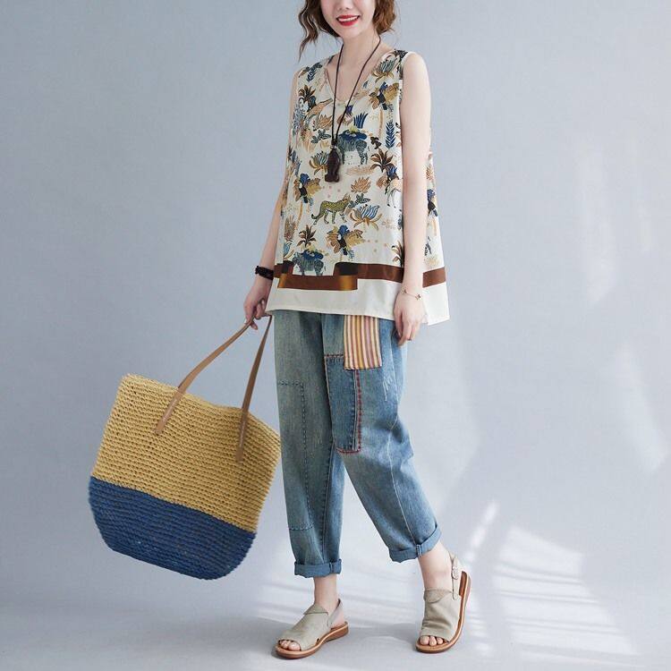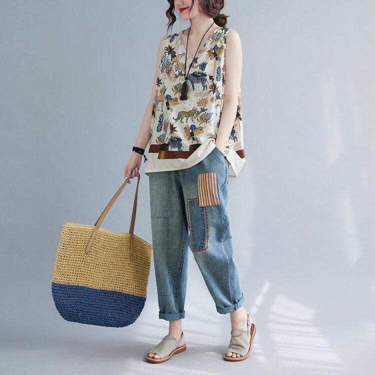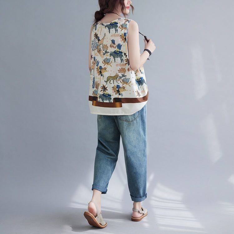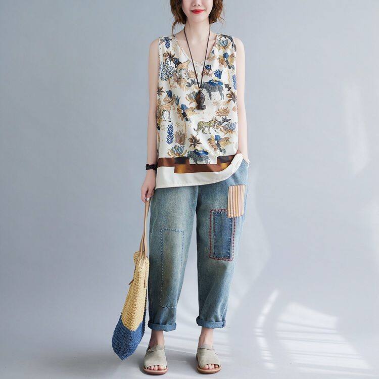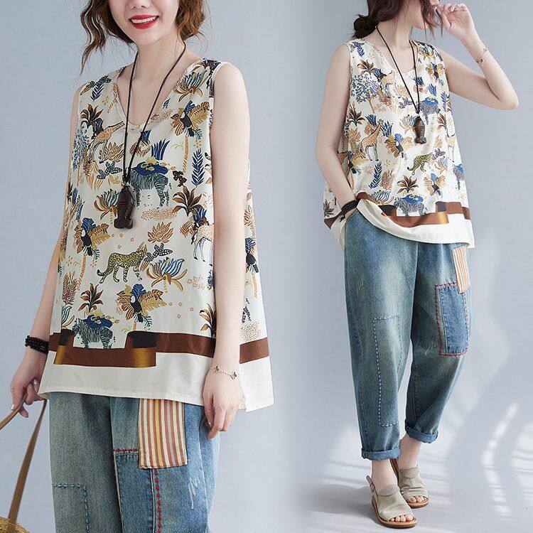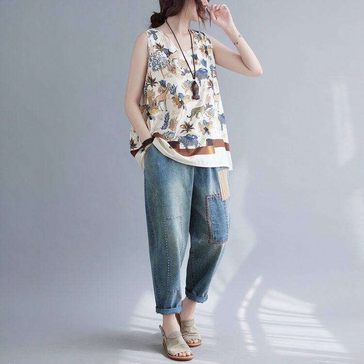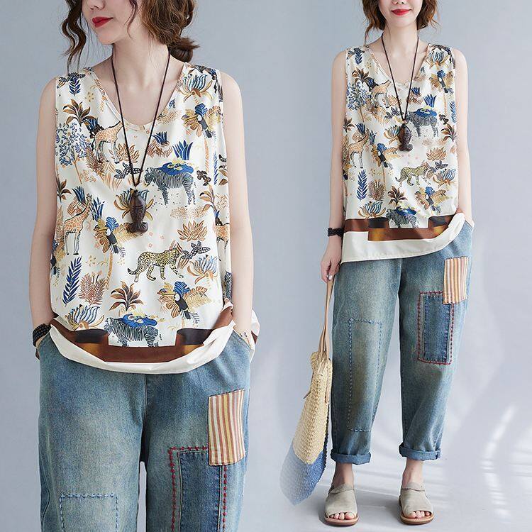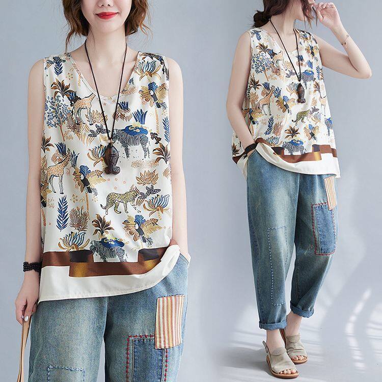 WhiteTime V-neck top female sleeveless vest T-shirt female outside wear large size women's summer vest female summer thin model leggings female 301T0852